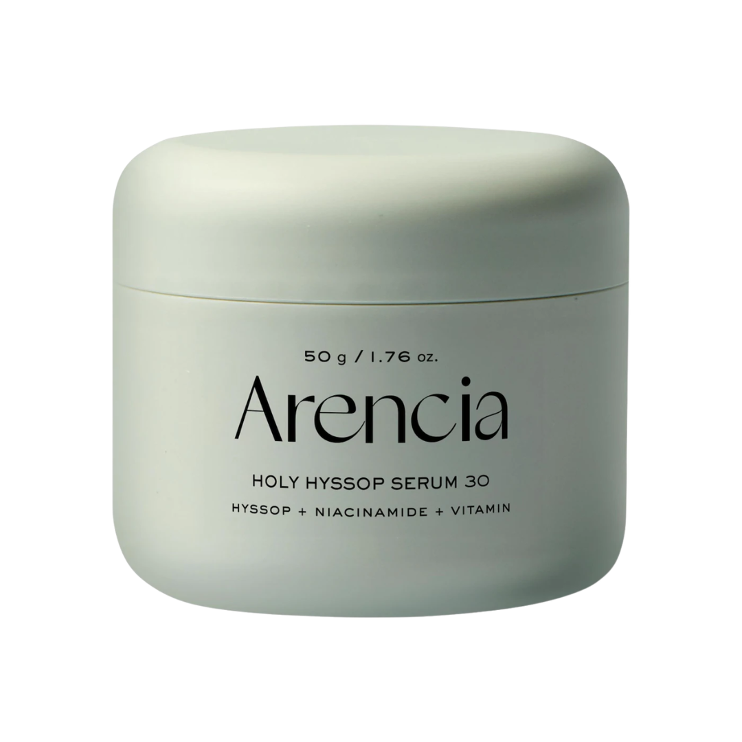 Arencia Holy Hyssop Brightening Serum 30 is a targeted treatment designed to help visibly reduce the appearance of post-acne marks while promoting a clearer, more even-looking complexion. Formulated with a powerful blend of Vitamins A, C, and E alongside brightening Niacinamide, this serum works to support skin renewal, improve tone, and enhance overall radiance. Holy hyssop extract helps calm and balance the skin, making it suitable for blemish-prone complexions in need of clarity and care. The lightweight, fast-absorbing texture layers effortlessly into any routine, helping skin appear smoother, brighter, and more refined with continued use.