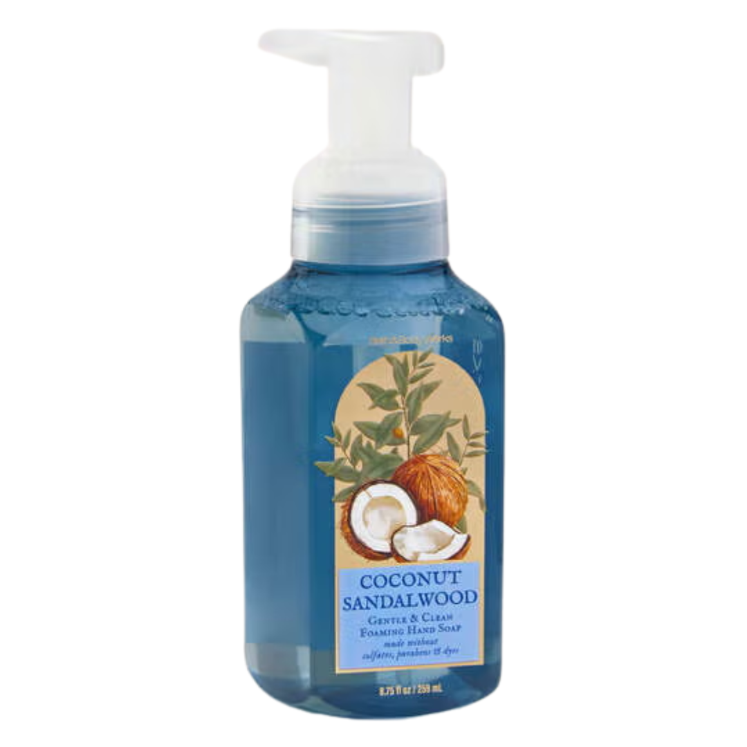 Brand: Bath & Body WorksInfuse your hand-washing routine with warmth and tropical charm with the Coconut Sandalwood Gentle & Clean Foaming Hand Soap. Its rich, foaming formula gently cleanses while leaving hands soft, smooth, and lightly scented with creamy coconut and rich sandalwood notes. Perfect for daily use, it transforms hand washing into a soothing, luxurious experience.