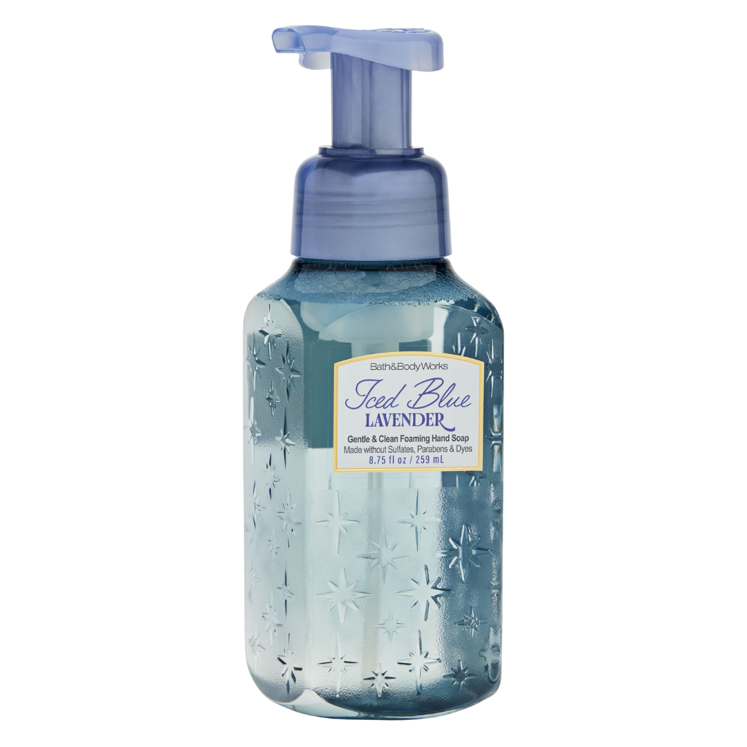 Brand: Bath & Body WorksRefresh and soothe your hands with the calming, winter-inspired scent of Iced Blue Lavender Gentle & Clean Foaming Hand Soap from Bath & Body Works. This gentle foaming soap cleanses hands thoroughly while leaving them soft, smooth, and lightly fragranced with a crisp, lavender-infused aroma. Perfect for daily use or adding a serene, seasonal touch to your home.
