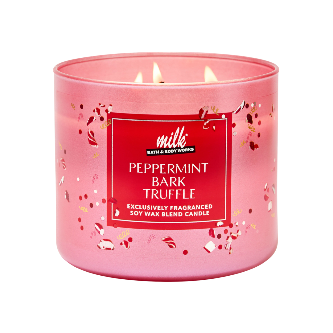 Brand: Bath & Body WorksFill your space with the festive scent of Peppermint Bark Truffle from Bath & Body Works. This 3-wick candle blends cool, refreshing peppermint with rich chocolatey notes for a cozy, holiday-inspired aroma. Perfect for seasonal ambiance or gifting, it brings the sweet spirit of the holidays to any room.