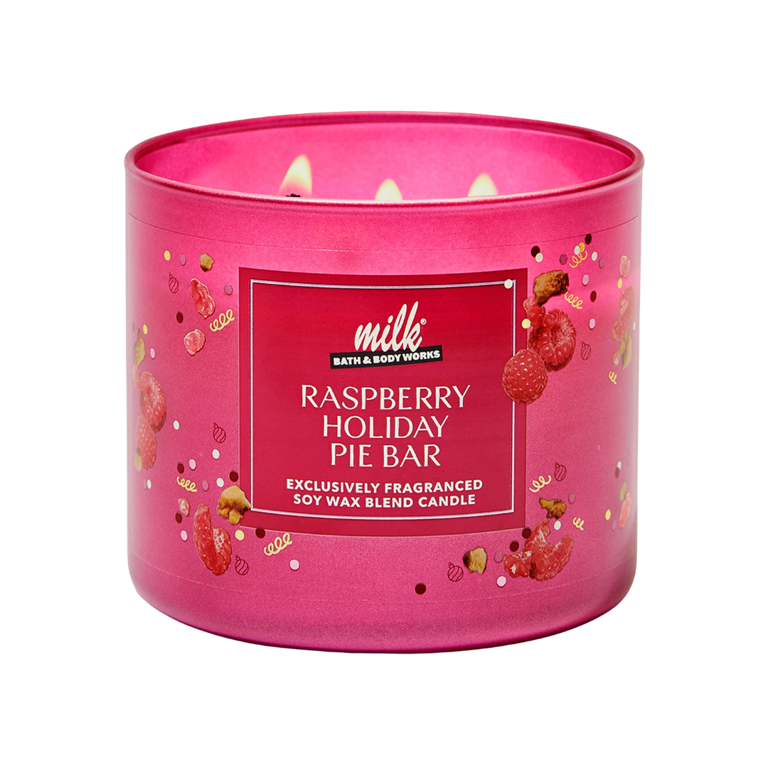 Brand: Bath & Body WorksCelebrate the season with the sweet, festive scent of Raspberry Holiday Pie in this 3-wick candle bar. Bursting with juicy raspberry, warm holiday spices, and buttery pie notes, it fills any room with cozy, seasonal charm. Perfect for holiday decorating or gifting, this candle brings a deliciously inviting aroma to your home.