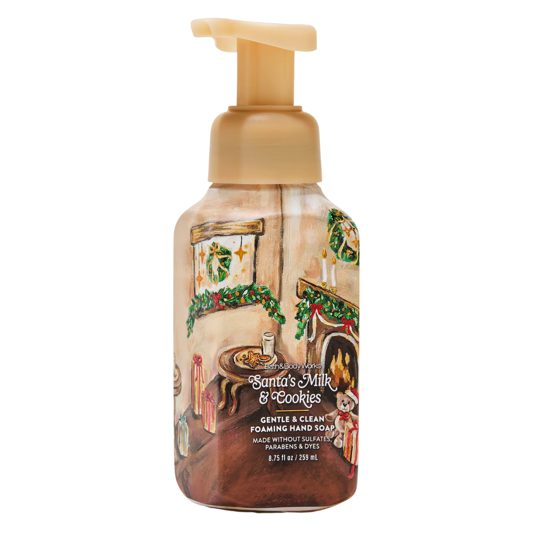 Brand: Bath & Body WorksCelebrate the season with the sweet, festive aroma of Santa’s Milk & Cookies Gentle & Clean Foaming Hand Soap from Bath & Body Works. This gentle foaming soap cleanses hands thoroughly while leaving them soft, smooth, and lightly fragranced with the warm, comforting scent of freshly baked cookies and creamy milk. Perfect for everyday use or adding a cheerful, holiday-inspired touch to your home.