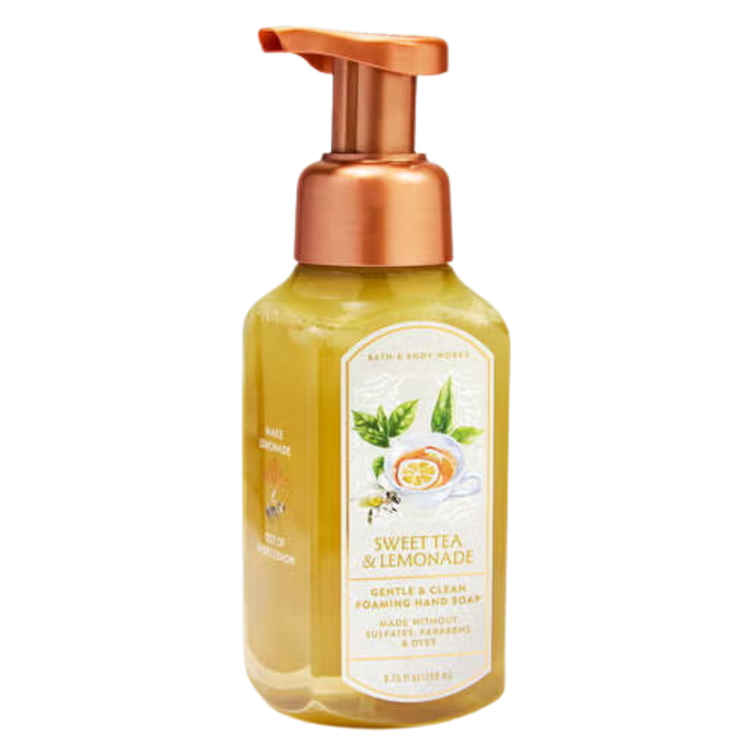 The Bath & Body Works Sweet Tea & Lemonade Gentle & Clean Foaming Hand Soap is a liquid hand wash designed to cleanse the skin while creating a light, airy foam. Foaming hand soaps of this type are typically dispensed onto wet hands and rinsed away, leaving hands feeling clean and refreshed.