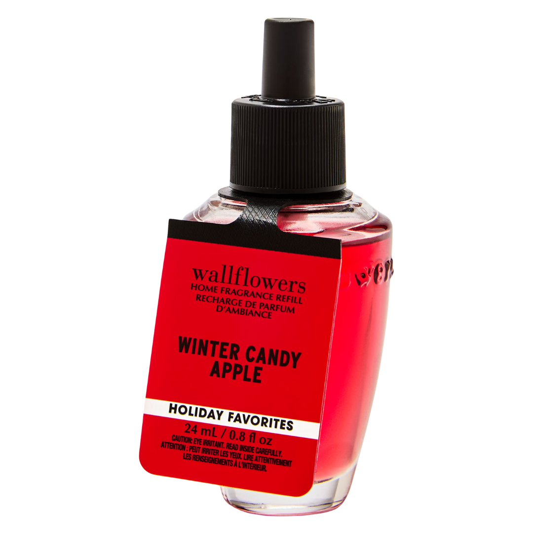 Brand: Bath & Body WorksEnjoy the sweet, festive aroma of Winter Candy Apple with this Wallflowers Fragrance Refill from Bath & Body Works. Infused with crisp winter apples, juicy holiday berries, and a hint of seasonal warmth, it instantly fills your space with a cheerful, holiday-inspired scent. Perfect for everyday use or adding a festive touch to any room.