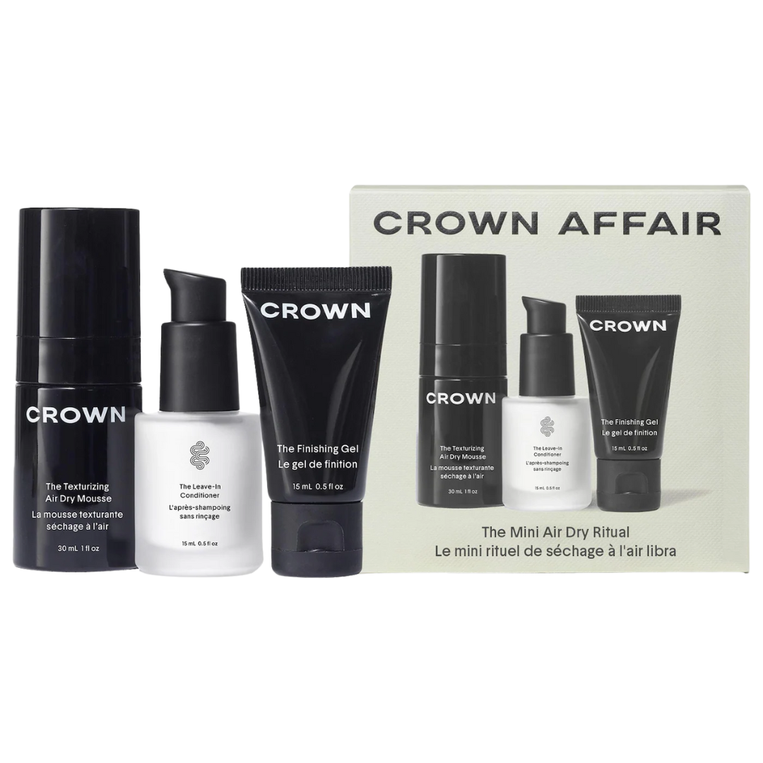 Brand: Crown AffairAchieve effortless, air-dried perfection with the Mini Air Dry Hair Set from Crown Affair. This travel-friendly set includes The Leave-In Conditioner (0.5 oz / 15 mL) to nourish and detangle, The Texturizing Air Dry Mousse (1 oz / 30 mL) to enhance natural texture and volume, and The Finishing Gel (0.5 oz / 15 mL) to define and hold your style.