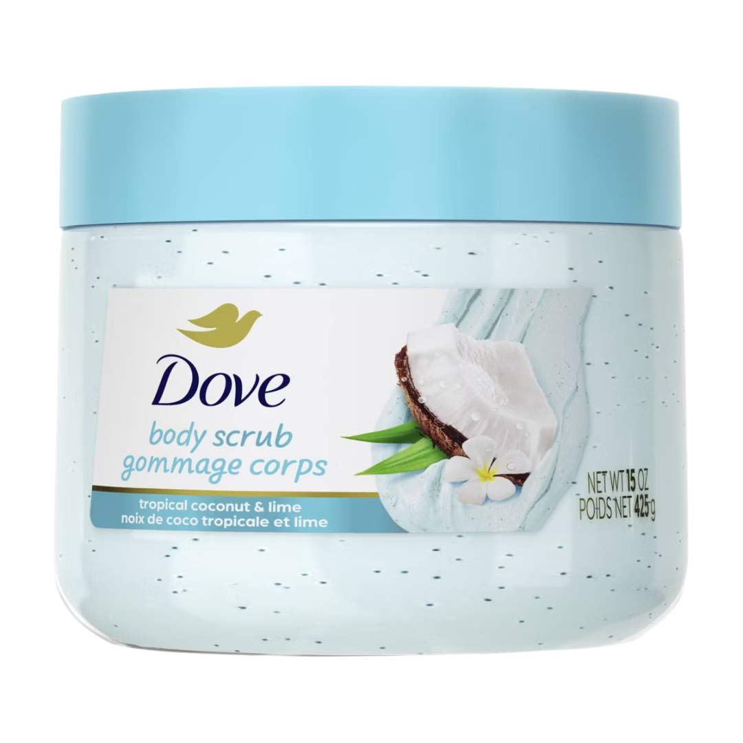 The Dove Beauty Scrub – Tropical Coconut & Lime is a body exfoliating scrub designed to gently polish the skin while cleansing and removing dull, dry surface cells. It has a whipped, creamy texture that spreads easily across the skin and rinses away cleanly, leaving the body feeling smooth and refreshed.