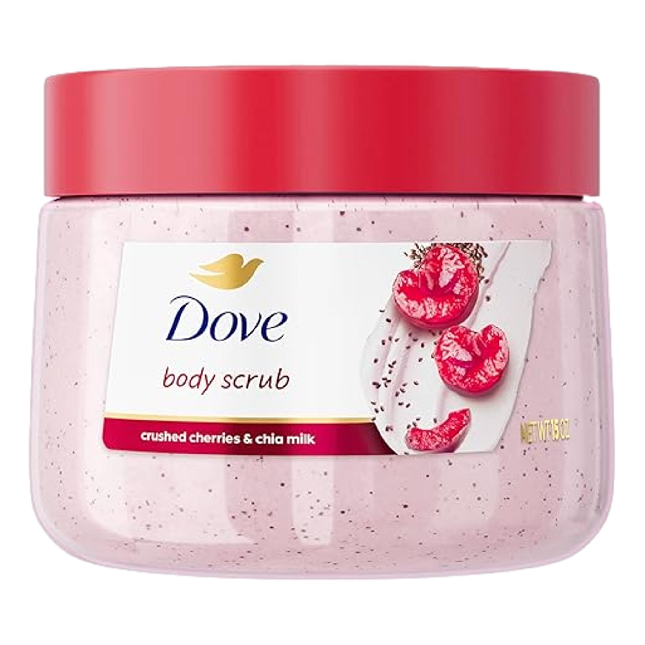 Reveal smooth, glowing skin with Dove Cherry & Chia Milk Exfoliating Body Scrub. This indulgent scrub combines the rich, fruity scent of sweet cherries with the gentle nourishment of chia milk, turning your shower into a spa-like treat.