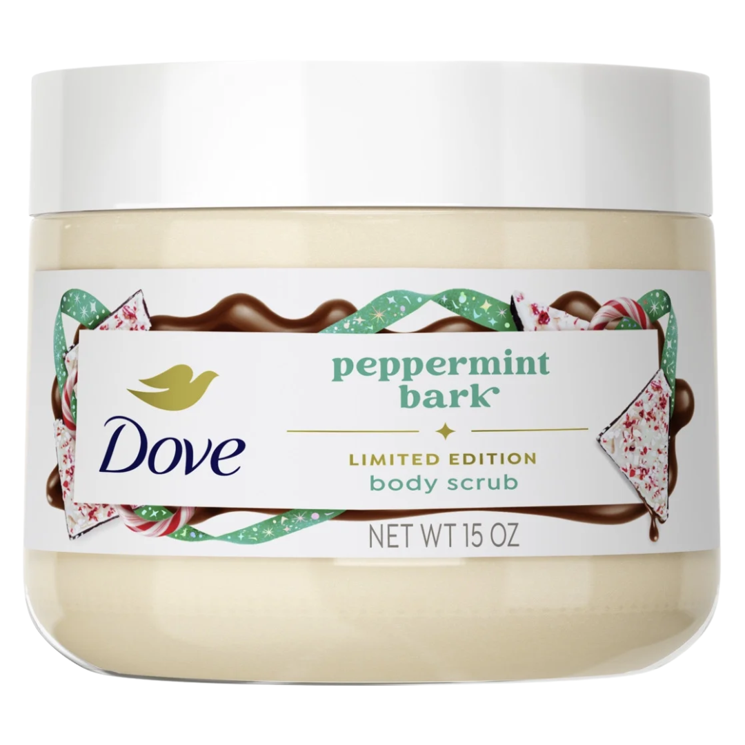 Brand: DoveCelebrate the season with Dove Holiday Treats Peppermint Bark Body Scrub. This festive scrub gently exfoliates and nourishes skin, leaving it soft, smooth, and glowing. Infused with a delicious peppermint bark scent, it transforms your shower into a holiday-inspired self-care moment.