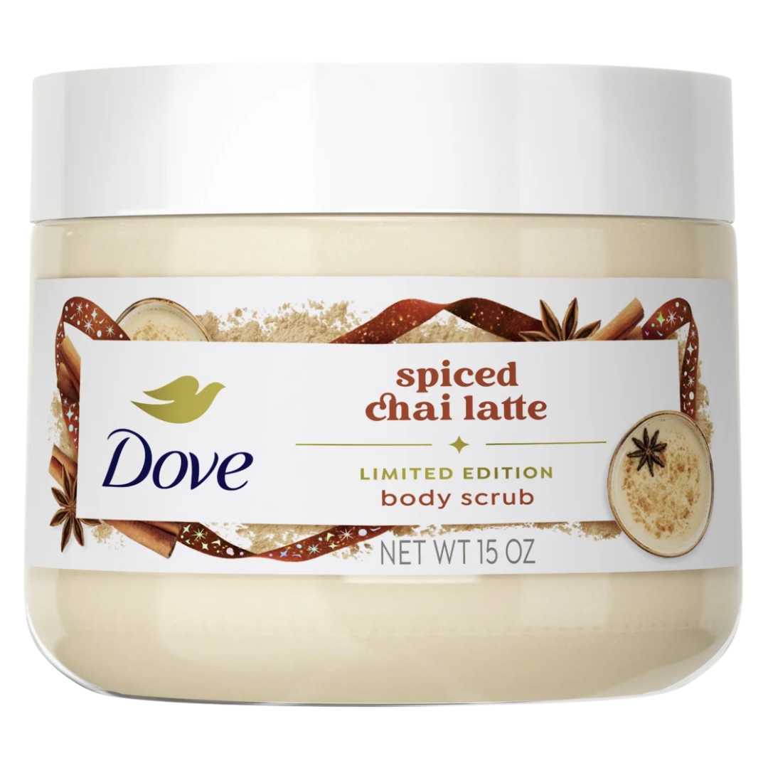 Warm up your winter skincare routine with Dove Holiday Treats Spicy Chai Latte Body Scrub. This limited-edition scrub gently exfoliates to remove dry, dull skin while leaving it soft, smooth, and nourished. Infused with a cozy spicy chai latte scent, it turns your shower into a comforting, seasonal treat.