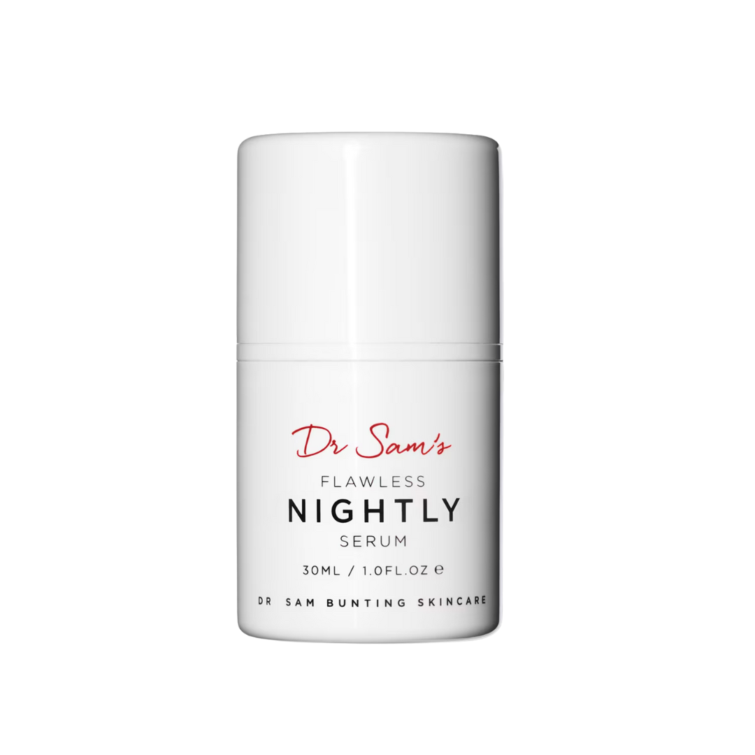 Brand: DR SAM'SRejuvenate your skin while you sleep with Dr Sam’s Flawless Nightly Serum. This powerful yet gentle overnight treatment works to nourish, restore, and refine your complexion as you rest. Formulated with targeted ingredients that help support skin renewal, it absorbs quickly to deliver deep hydration, improve texture, and enhance radiance by morning. Perfect for nightly use, this serum helps reveal smoother, more luminous skin with consistent use, giving you that refreshed, flawless glow you wake up to every day.