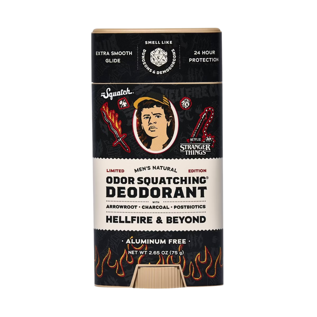 Turn up the heat with Dr. Squatch Men’s Natural Deodorant in Hellfire & Beyond. Formulated with naturally derived ingredients and free from aluminum, this deodorant helps neutralize odor and absorb moisture while staying gentle on skin. The bold, fiery Hellfire & Beyond scent delivers long-lasting freshness with an edge, keeping you confident all day—no harsh chemicals, just powerful performance.