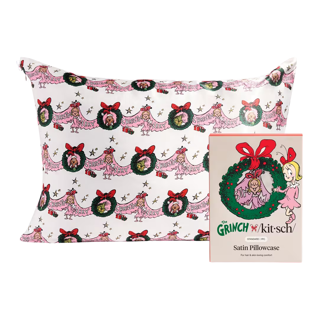 Brand: KitschAdd a touch of festive fun to your bedtime routine with the The Grinch x Kitsch Satin Pillowcase. Crafted from silky-smooth satin, this pillowcase reduces friction on hair and skin, helping to prevent tangles, breakage, and creases while you sleep. Featuring playful Grinch-inspired designs, it’s the perfect way to combine comfort, care, and holiday cheer.