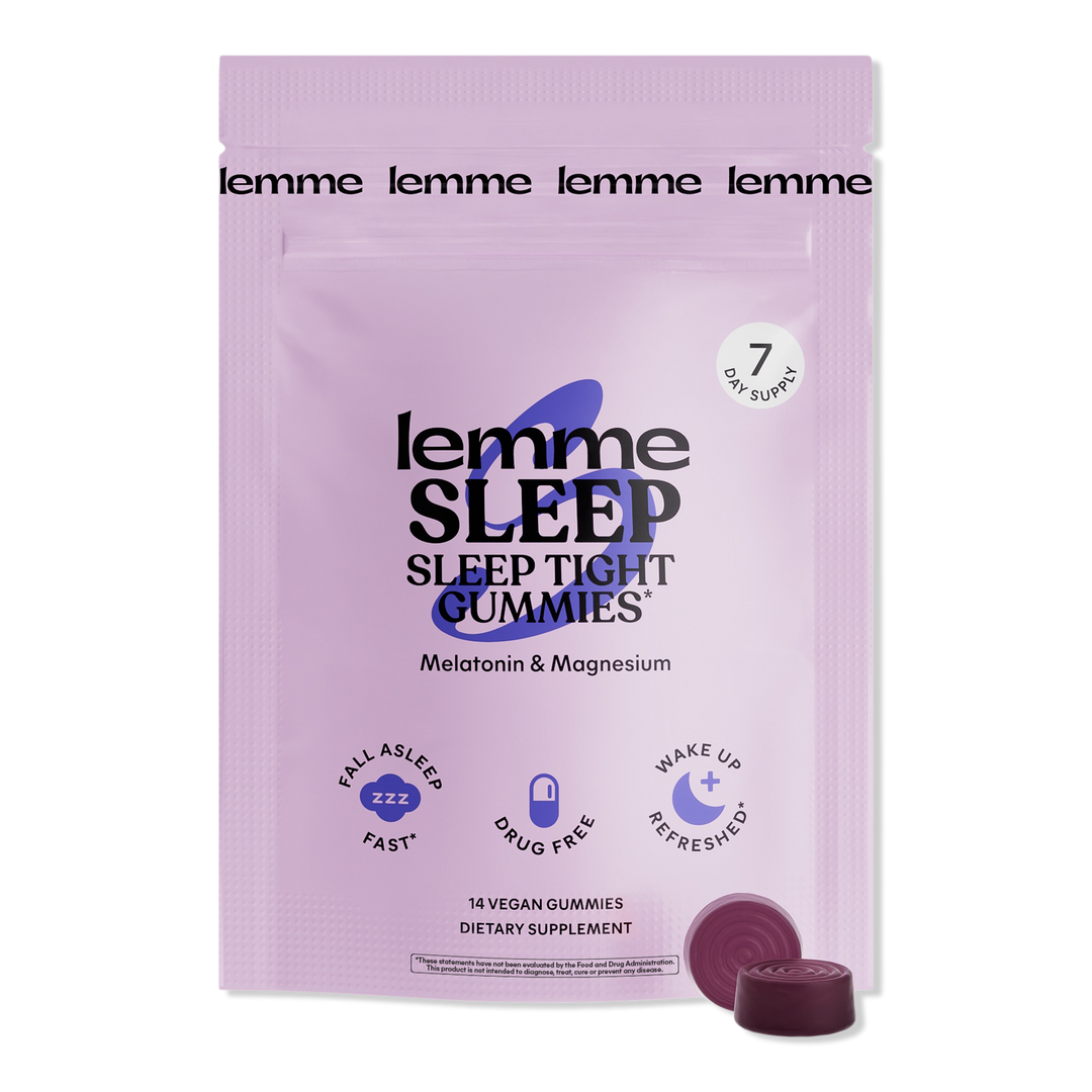Say goodnight the natural way with Lemme Sleep Sleep Tight Gummies. Expertly formulated with a gentle blend of Melatonin, Magnesium, and L-Theanine, these delicious, vegan gummies help you relax, unwind, and ease into restful sleep.