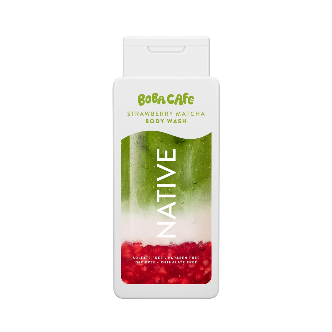Refresh and cleanse your skin with Native Body Wash, Limited Edition Strawberry Matcha, featuring a fun Boba Café–inspired scent. This gentle body wash blends juicy strawberry and earthy matcha notes for a fresh, uplifting shower experience. It cleanses effectively without stripping moisture, leaving skin feeling soft, smooth, and refreshed after every use.
