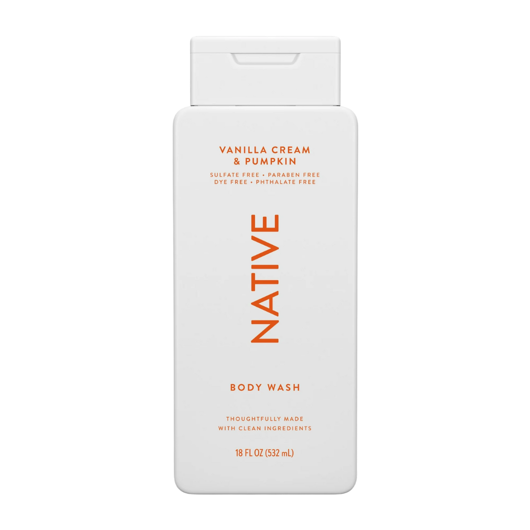 Celebrate the season with the cozy, comforting scent of Vanilla Cream & Pumpkin in this limited-edition body wash from Native. Its gentle, sulfate-free formula cleanses skin without stripping moisture, leaving it soft, smooth, and lightly scented with warm vanilla and spiced pumpkin notes. Perfect for adding a touch of festive indulgence to your daily shower routine.