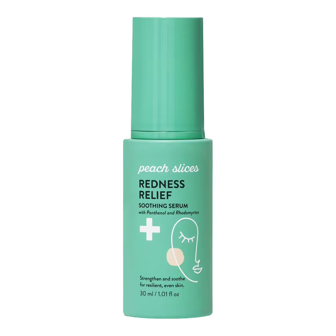 Brand: Peach SlicesCalm and comfort irritated skin with Peach Slices Redness Relief Soothing Serum. This lightweight, fast-absorbing serum helps reduce redness, soothe inflammation, and strengthen the skin’s natural barrier. Infused with gentle, skin-loving ingredients, it leaves skin feeling refreshed, balanced, and healthy-looking—perfect for sensitive or reactive skin in need of daily relief.