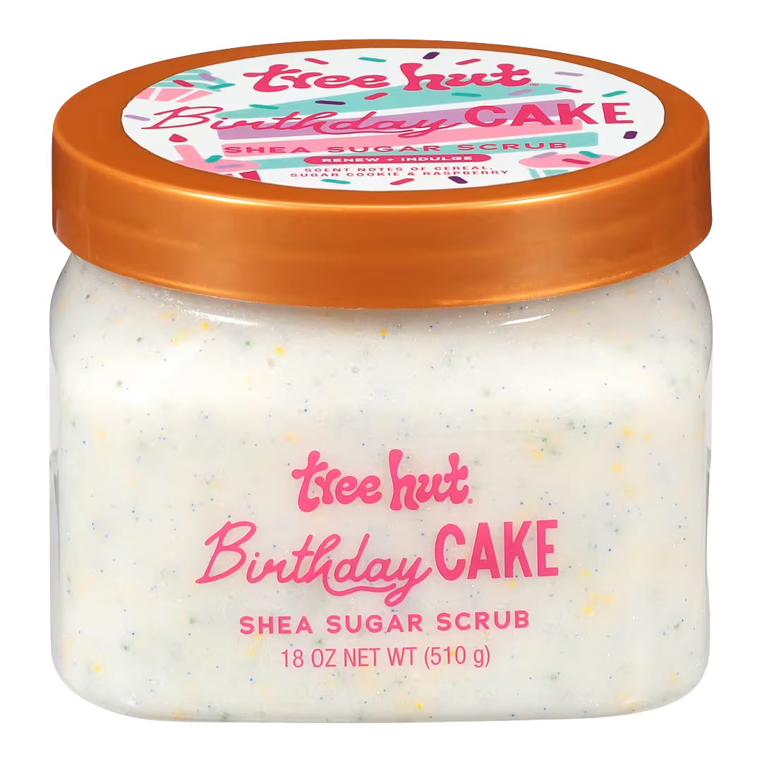 Brand: Tree HutTreat your skin to a sweet celebration with Tree Hut Birthday Cake Shea Sugar Scrub. This exfoliating body scrub gently buffs away dull, dry skin using natural sugar, while shea butter deeply nourishes to leave skin feeling soft, smooth, and glowing. Infused with the delicious scent of vanilla cake and sugary frosting, it transforms your shower routine into a fun, indulgent experience.